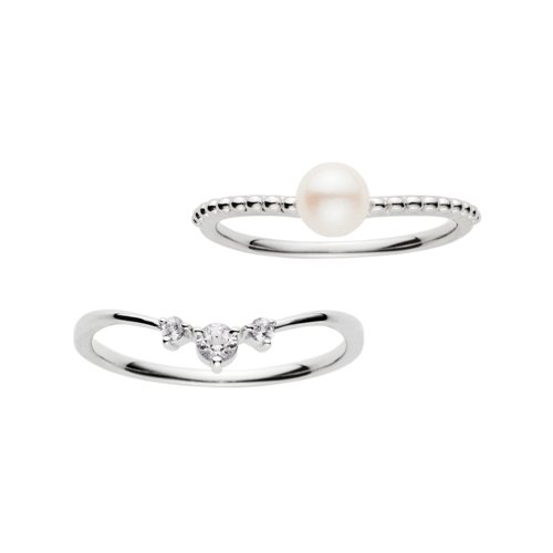 「ヴァンドーム青山 ブランフレ 2本セットリング」は、淡水パールのまろやかな白とホワイトトパーズの透明感のある白が、みずみずしい手元を演出してくれるシルバーのセットリングです。